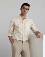 Beige Cotton Linen Stripe Slim Fit Casual Shirt