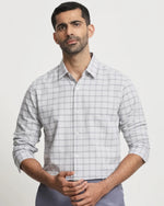 Light Grey Cotton Linen Check Slim Fit Casual Shirt